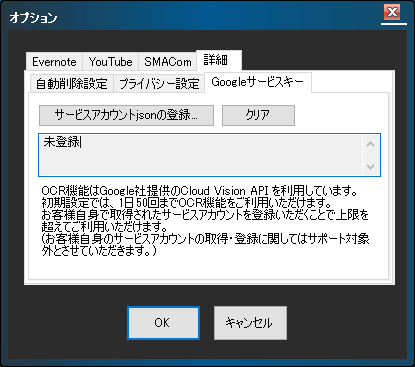 ※Google社のCloud Vision APIサービスのサービスアカウントの取得・登録に関してはサポート対象外となります。