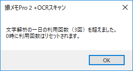 体験版をご利用の場合、OCR機能のご利用は1日3回に制限されています。