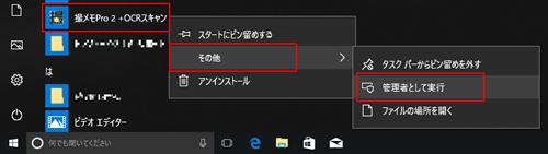 - スタートメニューのアプリ一覧の「なんでも画面キャプチャ & OCR + スキャン [撮メモPro 2]を右クリックします。