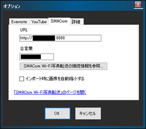 - 「なんでも画面キャプチャ & OCR + スキャン [撮メモPro 2]」を起動し、メニューバーの<ツール(T)>-<オプション(O)>画面の「SMACom」タブを表示します。